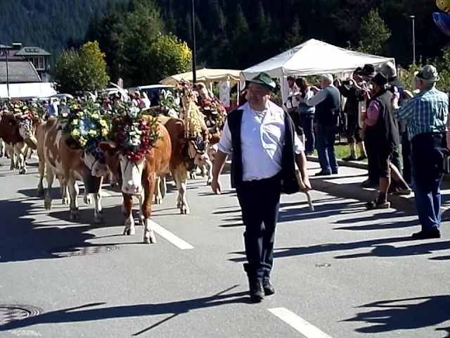 Wir haben das erste Mal den Almabtrieb erlebt und er ist sehenswert! Bereits vor der Ankunft der Kühe von dem Almen finden schon Tage davor Veranstaltungen statt, wie z.B. der Melcherball mit Melkerverabschiedung. Schon früh hört und sieht man, wie das Vieh von der Alm heruntergeführt wird und bunt geschmückt ziehen sie dann durch das Dorf hinunter bis nach Zell und müssen bis zu 30km auf der Straße zurücklegen. Entlang der Hauptstraße sind Stände aufgebaut und man kann Souvenirs sowie Käse und div.Schnäpse kosten und kaufen. Auch wir haben reichlich Gebrauch davon gemacht. Bis in den Spätnachmittag wurde auf der Hauptstraße gefeiert und getanzt.