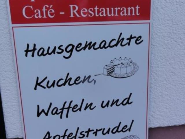 Nachdem wir zufällig am Alpenhotel Martin vorbeigekommen sind, haben wir uns entschlossen, dort vor unserer Heimfahrt Kaffee zu trinken. Das Schild "Hausgemachte Kuchen" lud uns zum verweilen ein. Die Einrichtung ist ganz gemütlich, die Wirtin freundlich und das Lokal sieht gepflegt aus. Der hausgemachte Kuchen hat durchschnittlich geschmeckt, die bestellten Tortenstücke waren eindeutig Convenience Ware. Die Waffeln wurden auf Octime-Tellern aus den 1980er Jahren serviert. Dafür war der Preis für einen "großen" Cappuccino mit 4,50 Euro seiner Zeit ein wenig voraus. Abgerundet wurde das Ganze mit Musik aus dem letzten Jahrhundert. Wir hatten das Gefühl, daß das Café mit einfachsten Mitteln betrieben wird. Aber die gute Lage in der Nähe der Alpspitzbahn scheint dies zu erlauben. Für uns war es der erste und letzte Besuch. Die Hotelbewertungen sprechen übrigens für sich.