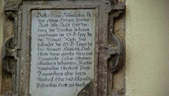 Geht man einige Meter weiter bei der St. Andreaskirche kommt man zur alten Lateinschule das nur durch das Info-Schild am Gebäude als dessen zu erkennen ist. Sie wurde im Jahre 1536 gegründet im Zuge der Reformation, der bedeutendster Rektor war damals der Magister Johann Alexander Döderlein, in Weißenburg selbst, sieht man viele Lateinische Inschriften, besonders über den Hauseingänge. . Adresse: Alte Lateinschule Martin-Luther-Platz 9 91781 Weißenburg i. Bay