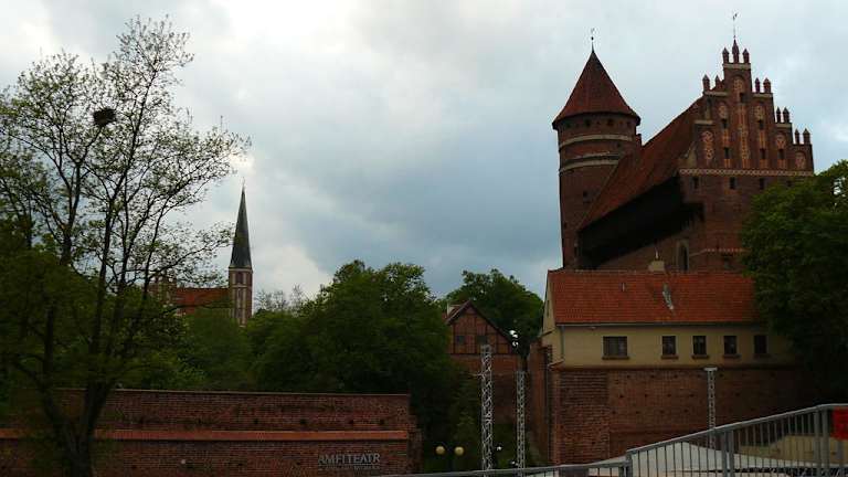 Ein Tagesausflug nach Allenstein ist empfehlenswert. Zwar darf man zunächst nichts total umwerfendes erwarten, es muss noch einiges getan werden in Sachen Restaurierung, aber vieles ist auch schon erfolgt. Allenstein ist die größte Stadt der Region und die Hauptstadt von Ermland/Masuren. Es wird viel gebaut, v.a. an den Straßen, was etliche Umleitungen zur Folge hat. Auch gibt es gerade im Bereich der Altstadt recht viele Einbahnstraßen. Sehenswert waren für meine Begriffe die Ordensburg und die Altstadt an sich. Geparkt habe ich kostenfrei in der Straße, die am neuen Rathaus abzweigt. (Fürs Navi: Ul. Wyzwolenia). Von hier ist es auch nicht weit zur Altstadt. Das neue Rathaus liegt etwas separat von der Altstadt und ist optisch recht schmuck. Von hier kann man schon in ca. 150 m das Hohe Tor (Wysoka Brama) sehen. Hier durch gehend gelangt man direkt in die autofreie Altstadt. Etliche Läden, Cafés, Restaurants und auch Straßenmusikanten erwarten einen. Die Fassaden sind oft schon renoviert, manchmal warten sie aber auch noch darauf. Zusammen gefasst ergibt sich aber trotzdem ein schönes Altstadtbild, welches einen erahnen lässt, dass Allenstein einmal eine recht reiche Stadt gewesen sein muss - findet man doch im Bereich des Marktes Fassaden mit eingearbeiteten Muscheln oder edlen Steinen. Man kann ein wenig bummeln und auf einen Kaffee oder ein Essen verweilen. Unmittelbar vom Markt gelangt man zur alten Ordensburg Allenstein. Diese hatte ich mir persönlich viel größer vorgestellt und war etwas "enttäuscht". Sie war nicht nur recht klein, auch war nur ein kleiner Teil der Burg zur Besichtigung frei gegeben wegen derzeitiger Restaurierungsarbeiten. Aber dafür hat man natürlich Verständnis ;-)) Der Turm der Burg war verschlossen, das Museumspersonal meinte, der Schlüssel wäre im Souvenirshop zu haben. Dort meinte man allerdings, das Museum hätte den Schlüssel und keiner hatte ihn letzten Endes ;-(( Schade, ich hätte gerne einen Blick von oben erhascht. Am Markt ist noch das alte Rathaus mit der Sonnenuhr an seiner rechten Seite sehenswert. Am etwas östlicheren Kreisverkehr Plac Generala Josefa Bema (nahe des Bahnhofes) stehen noch einige Gebäude mit schönen barocken, aber auch sanierungsbedürftigen Fassaden.