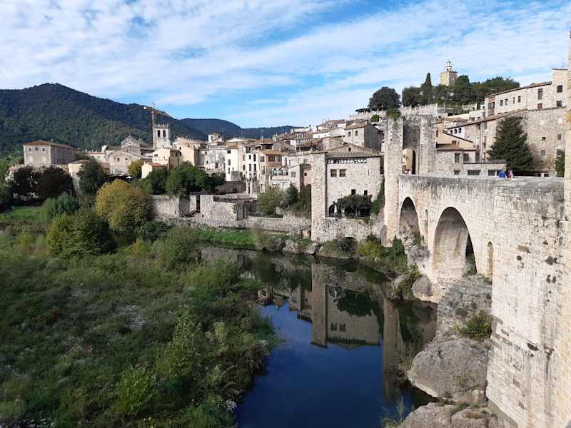 Besalú ist eine wunderschöne Kleinstadt mit einer prachtvollen mittelalterlichen Architektur. Das Städtchen liegt sehr malerisch am Fuße der katalanischen Pyrenäen, etwa 35 Kilometer nordwestlich von der Provinzhauptstad Girona entfernt ; es steht komplett unter Denkmalschutz. Das Wahrzeichen von Besalú ist die imponierende Steinbogenbrücke über dem Fluss Fluvia – Pont Vell –, die aus dem 11.-12. Jahrhundert stammt. Der Zugangsweg in die reizende Altstadt führt über diese Brücke. Aber Besalú hat noch viel mehr zu bieten: Pittoreske Gassen und Arkadengänge, gepflegte Herrenhäuser, ein unterirdisches jüdisches Badehaus, die Kirchen Sant Martí und Sant Vicenç aus dem 11. Jahrhundert, das alte Kloster Sant Pere, usw. Absolut empfehlenswert!