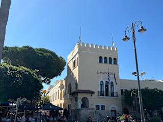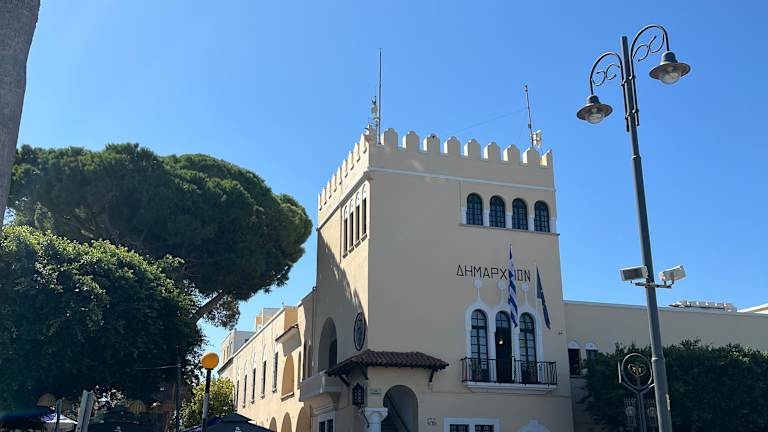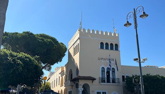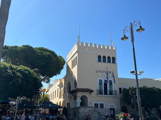 Das Rathaus von Kos ist ein klassisches Gebäude aus der italienischen Zeit, das an prominenter Stelle an der Akti Kountouriotou direkt am Hafen steht.