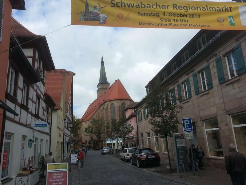 Schwabach hat knapp 40.000 Einwohner, bekannt ist Schwabach durch ein nur noch selten vorkommendes Handwerk: der Blattgoldschlägerei. Noch heute produzieren sechs Betriebe in Schwabach das dünne Edelmetall. Schwabach besticht durch eine vorbildliche sanierte Altstadt. Als einzige deutsche Stadt wurde sie bereits 1979 mit der "Europa Nostra Medaille" für den Schutz des architektonischen und landschaftlichen Erbes in Europa prämiert. Mir hat die Altstadt wunderbar gefallen.