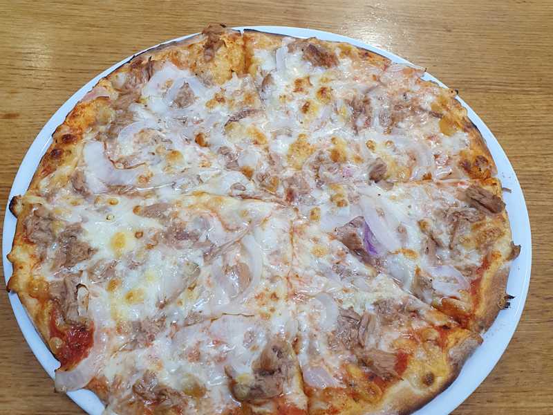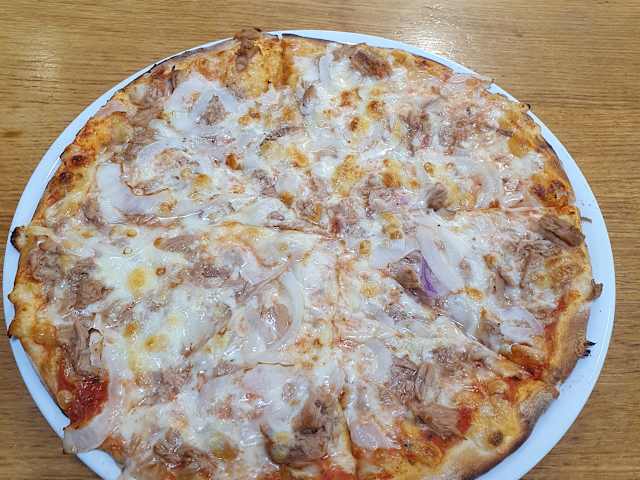 Besuch am Montag, 03. Juni 2024 mittags Das Geschäft "Antalya Döner & Feinkost" von Ettlingen befindet sich im dortigen Rewe Center, an der Huttenkreuzstraße. Vor Ort gibt es nicht nur den Döner-Laden, sondern es beinhaltet auch eine Feinkost-Ecke, wo man mediterranes eingelegtes Gemüse kaufen kann. Bei meinem Besuch waren insgesamt 3 Mitarbeiter vor Ort und diese waren freundlich. Bestellung: Nr. 21 - Pizza Tonno mit Thunfisch, Zwiebeln für 9,00 € Fanta in der 0,33l-Dose für 2,00 € Pizza war reich belegt und wurde vor meinen Augen frisch zubereitet. Die Pizza war vom Mitarbeiter bereits geschnitten worden und der Käse hat sogar Fäden gezogen. Einzigster Punkt, den ich persönlich bemängle, dass sie obendrauf zu flüssig war und labberig, sodass man ein ganzes geschnittenes Stück nicht in die Hand nehmen konnte, da dieses runtergerutscht wäre - so hat man Stück für Stück mit Messer und Gabel essen müssen - nur Am Rand, konnte man die Pizza stückchenweise in die Hand nehmen. Es gibt eine Speisekarte zum Mitnehmen, hier muss ich einen kleinen Punkt ansprechen, dass seitens der Getränke die aufgeführt sind, keinerlei Größenangaben hinterlegt sind, was rechtlich aber vorgeschrieben ist. Grundsätzlich kann man den Antalya Döner durchwinken, Pizza ist groß und für das Geld, absolut im Rahmen.
