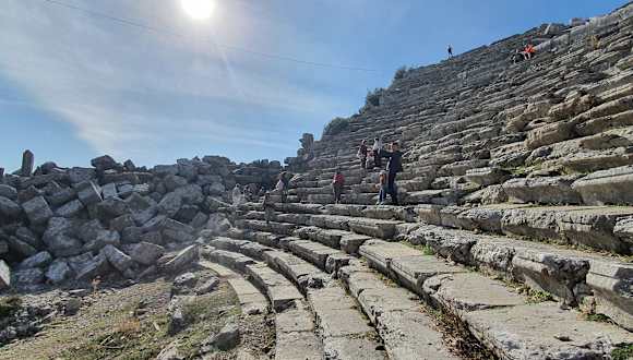 Erster Stopp auf unserem gebuchten Ganztagesausfluges war der Besuch des Dorfes Selge mit dem römischen Theater. Wir waren eine kleine Gruppe und die einzigen Touristen dort. Um bis ganz nach oben zu laufen, braucht man gutes Schuhwerk, eine gute Kondition und man muss schwindelfrei sein. Wer körperlich nicht in der Verfassung dazu ist, hat die Möglichkeit am Dorfeingang den Damen zuzuschauen, wie sie frisches Fladenbrot zubereiten und zu einem wirklich günstigen Preis einen kleinen Snack und Tee zu kaufen. Wir anderen hatten auch noch Zeit uns nach dem Aufstieg anzuschließen. Etwas unangenehm fand ich persönlich, dass uns zwei Damen die komplette Strecke gefolgt sind, um uns ihre Waren schmackhaft zu machen. Einige haben etwas gekauft, um sie loszuwerden, was jedoch nicht so ganz funktioniert hat.