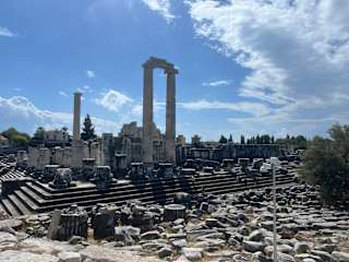 Didyma (heute Didim in der Türkei) war ein antikes Heiligtum im Westen Kleinasiens mit einer bedeutenden Orakelstätte des Gottes Apollon. Der Legende nach hat Leto ihren Sohn Apollon hier von Zeus empfangen...Imposante Grüße die sich nur bei einem Rundgang im inneren erschließt...untrennbar mit Milet verbunden...diese Ruinenstadt befindet sich ca. 16km entfernt...dort eigentlich ein Muss der Besuch des Museums...wie überall in der Türkei Eintritt nur mit TL zu bezahlen...