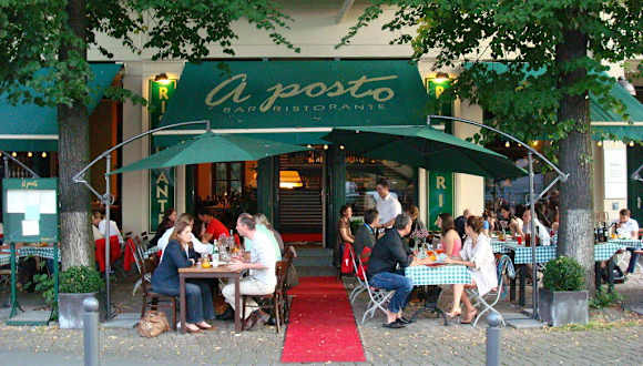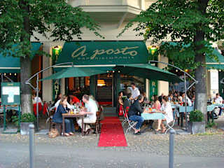 Inmitten dem pulsierenden Leben der Hauptstadt liegt etwas versteckt, direkt hinter dem Hackeschen Markt im Historischen Zentrum Berlins das „aposto“. Umringt von Galerien, Mode und Kunst gelegen am Monbijoupark wo einst das Schloss Monbijou stand, erlebt man hier, etwas abseits vom Trubel, ein kleines Stück Italien.Das moderne, geradlinige Design, bestimmt durch viel Holz und Glas, lädt ein zum Genießen des reizvollen Angebots italienischer Speisen und einer außergewöhnlich großen Auswahl italienischer Weine in besonderer Atmosphäre. Entspannung an lauen Sommerabenden auf der Terrasse am Monbijouplatz. Pizza, Pasta, Salat oder ein hervorragendes Filet dazu ein Glas Weiß- oder Rotwein oder ein erfrischendes, kühles Bier - einfach perfekt! Vorspeisen 4,00 -12,00 € Hauptgerichte 6,50 - 28,00 € Dessert 6,50€ Glas Wein ab 3,30€ Bier ab 2,40€