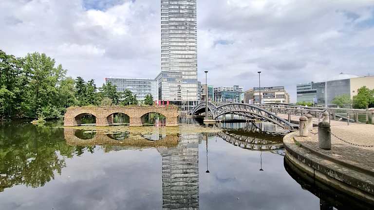 Das Äquadukt mitten im See des Mediaparks ist der Rest einer Wasserversorgungsanlage des früheren Römischen Reiches. Die Anlage versorgte das antike Köln mit Wasser aus der Nordeifel für die öffentlichen Thermen, Laufbrunnen und private Haushalte. Es besteht aus Naturstein und einer betonähnlichen Substanz. Die auch mit „Römerkanal“ bezeichnete lange Wasserleitung war bis ca. 260 n. Chr. In Betrieb.