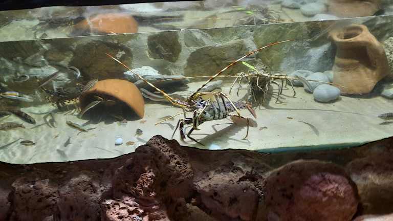 Die "Langustenhöhle" wie das Seewasser-Aquaruim auch genannt wird, liegt vor der Cala Gració (am Cap Blanc) in San Antonio! Liegt direkt am Meer und ist ausgeschildert! Rochen, Katzenhaie, Muränen und viele bunte Fische kann man in dieser unterirdischen Grotte bestaunen! Man läuft über einen Holzsteg und guckt von da aus zu den Meerestieren! Geöffnet; In den Sommermonaten von 10.00 Uhr bis 20.00 Uhr Erwachsene: 4 Euro Kinder: 2 Euro Einen kleinen Kiosk gibt es auch, da bezahlt man auch die Eintrittskarte! Für Kinder sicher spannender als für Erwachsene, aber im grossen und ganzen mal toll anzusehen!