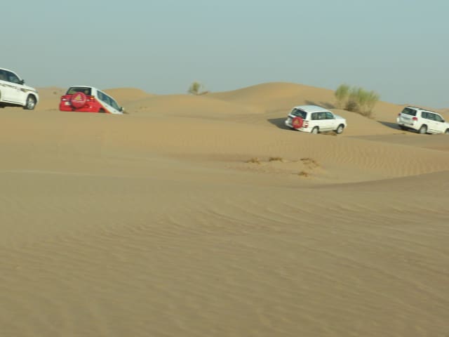 Zu Hause über Meiers Weltreisen gebucht. Günstiger als direkt beim Veranstalter übers Internet. Wurden um 15:30 Uhr direkt am Hotel abgeholt. Englischsprachiger Fahrer. Fahrt zur Wüste ca. 1 Stunde. Dort zuerst eine Falkenshow, dann weiter durch die Dünen (Achterbahnfahrt *g*) bis zum Sonnenuntergangs-Fotostop. Danach zum DInner in ein Beduinen-Zeltlager. Alles inclusive. Kamelreiten, Foto mit Falken, Buffet, Getränke, Shisha rauchen, Hennatatoo und Bauchtanz..... war sehr schön. Bilder die dort von einem (professionell) fotografiert wurden -leider VIEL zu teuer.