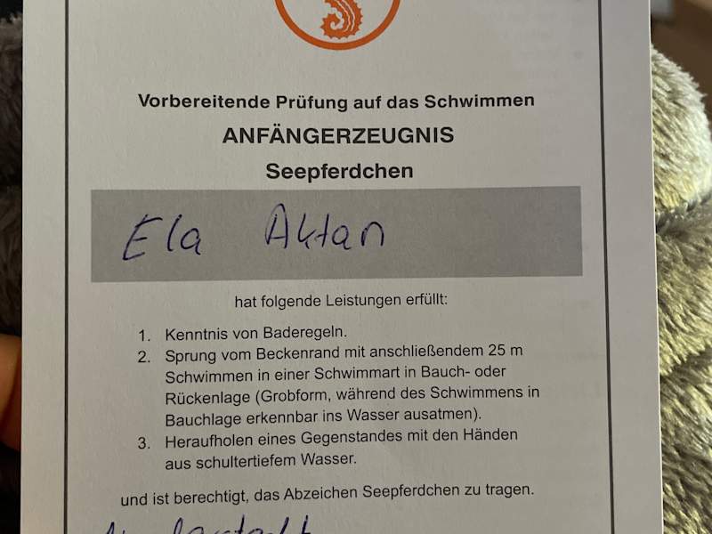 Seepferdchen Anfängerzeugnis