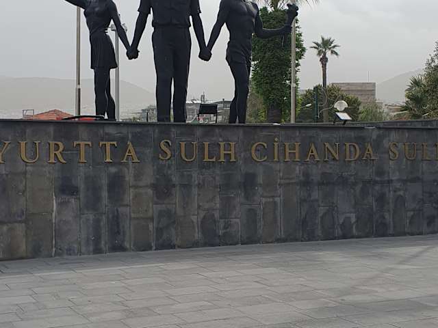 Neben einem Atatürk-Denkmal auf dem Berg über der Stadt steht ein weiteres Denkmal, das an den Begründer der Republik Türkei ehrt, an der belebten und von Einheimischen wie Besuchern gleichermaßen frequentierten Promenade. Allerdings fehlt den meisten Besuchern wohl das besondere Verhältnis, das die Türken zu diesem Nationalhelden haben.