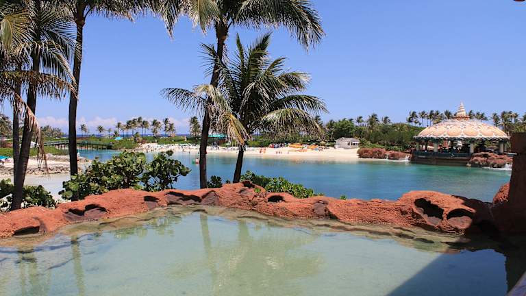 Wir sind als Tagesausflug unserer Kreuzfahrtreise in Nassau angekommen und hatten somit auch die Chance das Atlantis Beach auf Paradise Island zu erkunden. Und vorab: "Paradise Island" wird der Sache an sich gerecht :D Wir empfehlen eine Anreise nach Paradise Island per Wassertaxi. Dies ist kostengünstiger als Taxi und/oder Bus und man bekommt sogar noch eine kleine Sightseeing Tour geboten. Einfach am Hafen an dem bunten Gebäude in Richtung "Senior Frog" gehen, dann läuft man schon auf die örtlichen Anbieter zu und wird angesprochen. Wir haben für 2 Erwachsene Hin-und Rückfahrt 6$ gezahlt. Auf Paradise Island angekommen geht es durch ein kleines Sjopping Viertel mit kleinen bunten Hütten und diversen Marken Boutiquen. Außerdem kommt man automatisch am Hafen vorbei und kann hier erste Eindrücke vom "Prunk und Protz" der Bahamas erleben. Eine Yacht neben der nächsten und sich in Nullstellen übertreffend. Sehr beeindruckend das zu sehen. Im Atlantis, so muss man wissen, gibt es einen öffentlichen und einen nicht öffentlichen Bereich. Man merkt recht schnell ab wann der nicht öffentliche Bereich beginnt, da hier immer Hotelangestellte stehen und nach der Zimmerkarte fragen und einen freundlich zurück weisen, sofern diese nicht vor zu zeigen ist. Trotzdem gibt der öffentliche Bereich schon genug Anlass zum staunen. Die Gartenanlage mit eigener Lagune ist eine Augenweide. Das Farbspiel zwischen den Pflanzen, dem Wasser und dem Himmel ist wirklich toll. Wir sind dann durch das Gebäude, dem Casino bis hin zum Beach Club. Von dort aus erreicht man den Strand. Der Weg ist etwas weitläufig, da man quasi an der gesamten Hotelanlage vorbei muss. Aber für den Strand hat es sich definitv gelohnt. Und das Beste war dann noch, dass zu dem Zeitpunkt der Hintereingang zur Hotelanlage nicht bewacht war, sodass wir freien Zugang in die Anlage hatten und uns in Ruhe umsehen konnten. Das Aquarium welches man von oben, sowie auch von unten bestaunen kann führt sich gut in die Umgebung ein. Man hat nicht das Gefühl, dass die Tiere eingesperrt sind, da so viel Natur die Becken umgibt - einfach super. Zum Wasserpark haben wir es dann leider nicht geschafft. Das war des Glückes dann doch zu viel. Aber wie wir aus nächster Quelle erfuhren, ist dies ein ebenso toller Abschnitt der Anlage, der es sogar zulässt auf Schwimmreifen in Stromschellen artigen Gewässern durch die Anlage zu schippern. Alles in allem haben wir uns fast 4 Stunden auf Paradise Island aufgehalten. Ein lohenswerter Ausflug und Eindrücke die wir so schnell nicht vergessen werden. Viel Spaß....