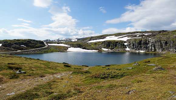 Der Aurlandsvegen (Fylkesveg 243 - Fv243) wird auch Snøvegen (also Schneeweg) genannt. Dies liegt daran, dass an dieser nur im Sommer befahrbaren Nebenstrecke auch im Sommer noch erhebliche Schneemengen liegen. Die Straße führt durch eine herrliche (Hoch-)Gebirgslandschaft bis auf über 1300 m Höhe, vorbei an zahlreichen Schmelzwasserseen, mindestens einem Wasserfall und diversen Picknick-geeigneten Fotostops. Hier bieten sich auch überall Gelegenheiten für Wanderungen/Kurzwanderungen. Etwa 8 km von Aurland entfernt erreicht man den Aussichtspunkt "Stegastein" mit einem fantastischen Blick über den Aurlansfjord. Die Hauptstrecke im Verlauf der E16 von Lærdal nach Aurland ist natürlich der weltlängste Straßentunnel (24,5km lang, Lærdal-Tunnel), ganzjährig befahrbar und die schnellste Verbindung.