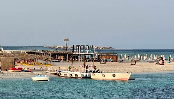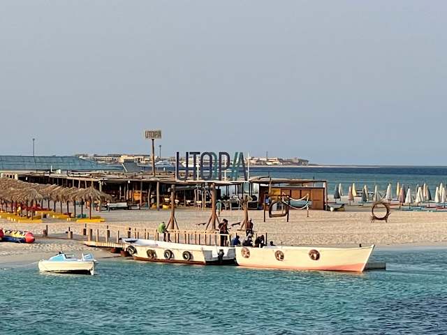 Der Ausflug wird als "das neue Ausflugsziel" in Ägypten von den Reiseleitern beworben. Nach einem circa 30 minütigen Bustransfer werden die Gäste auf diverse Schiffe verteilt. Diesen haben jeweils 2 Etagen. Mit unserem Schiff sind dann noch 8-10 Schiffe zusammen rausgefahren. Es gibt zunächst zwei geführte Schnorchelrunden. Für uns als erfahrene Schorchler und Taucher etwas zu unsportlich, da natürlich Rücksicht auf schlechte Schwimmer genommen werden musste. Hier sollte eine bessere Einteilung erfolgen. Danach gibt es dann Essen an Bord in gemischter Qualität. Getränke sind inklusive. Nach dem Essen ging es an den nächsten Ankerplatz wo Banana Boot angeboten wurde - ebenfalls im Preis inkludiert. Nächster Programmpunkt dann Glasbodenbootfahrt zur Insel UTOPIA - naja nennen wir es eher Sandbank. Wir sind lieber an Bord geblieben, als uns diesen Sandhaufen anzuschauen. Es gab dort keine Liegen, keine Sonnenschirme, also keinen Schatten, keine Bar...einfach NICHTS. Immer Sommer sicherlich sehr sehr sehr heiss. Die Crew hat sich aber Mühe gegeben und war sehr freundlich.