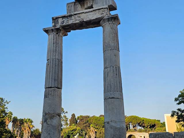 Der wohl bekannteste Eintritt zur Agora erfolgt über das „Tor der Steuern“ von der Plata Eleftherias aus (Eintritt ist kostenfrei). Ich habe die Stätte allerdings von der linksseitig dazu gelegenen kleinen Straße Nafklirou aus betreten (Mini-Straße mit vielen Restaurants) und stand fast sofort vor einem großen Lageplan der Agora / der Stätte – wobei der erste Orientierungspunkt der Tempel der Aphrodite war. Ab hier habe ich meine Besichtigung dann gestartet. Der Bau der Agora / der Stätte an sich geht auf das 4. / 3. Jh. v. Chr. zurück, allerdings stammen die verschiedenen Ruinen aus unterschiedlichen Zeitepochen. So stammen die heute zu besichtigenden Überreste des Aphrodite-Tempels aus dem 2. Jh. v. Chr. / aus hellenistischer Zeit. Andere Teile des ursprünglich „doppelten“ Heiligtums – sowie große Teile der gesamten Stätte - wurden bei einem Erdbeben im Jahr 469 völlig zerstört. Das Aphrodite-Heiligtum war ein „doppeltes“ Heiligtum, da es zwei Tempel gab: den Tempel der Aphrodite Pandemos und den Tempel der Aphrodite Pontia (Information lt. Quellen vor Ort). Auf den Ruinen dieses Geländes wurde später eine Basilika errichtet, die aber nach den ersten Ausgrabungen (im 20. Jh.) ein wenig nach Osten „verlegt“ worden sein soll, um wenigstens einen Teil eines Aphrodite-Tempels wieder aufbauen zu können. Die Basilika wurde im 5./ 6. Jahrhundert gebaut – Bauherren waren die Johanniter (Kreuzritter). Von hier aus bin ich weiter zu dem Tempel des Herakles gegangen. Hier waren insbesondere die abgedeckten, aber teilweise doch noch ein wenig sichtbaren Mosaiken interessant, weiterhin Arten von „Verkachelungen“ an den Mauerüberresten. Auch dieser Tempel stammt aus der Zeit v. Chr. Nach dem Tempel des Herakles erkennt man die ersten Befestigungsanlagen und - davor liegend – die Insulae: Häuserblocks, rechtwinklig angelegt. Gegenüber der Insulae, auf der anderen „Straßenseite“, findet man ein schönes, großes, gut erhaltenes Mosaik. Welche Epoche ? Ich habe leider keine Informationen gefunden. Geht man nun an der Insulae entlang, die Straße hinunter, fällt der Blick auf die wieder aufgerichteten Säulen der Agora, des Markt- oder Versammlungsplatzes. Der ursprüngliche Platz soll eine Fläche von 160 x 80 m bedeckt haben und aus dem 4. Jh. v. Chr. stammen. Die ersten Ausgrabungen auf dieser Stätte wurden von Italienern 1935 bis 1942 durchgeführt, nachdem ein heftiges Erdbeben das Gelände 1933 völlig zerstört hatte. Denn: Bis 1933 hatten auf diesem Gelände ganz normale griechische Wohnhäuser gestanden – auf den Ruinen der Tempel (*). Die Zerstörung dieser Wohnhäuser bot die Chance, die antiken Reste auszugraben. Die Ausgrabungen wurden nach Beendigung des Zweiten Weltkrieg von griechischen Archäologen weitergeführt. Mir hat die Stätte sehr gut gefallen. Zwar ist vieles nur im Ansatz aufgebaut, aber es gibt viele schöne „Kleinigkeiten“, die schon äußerst interessant oder einfach nur schön sind .-) Unbedingt zu empfehlen. Meinen "Weg" habe ich im anliegenden Video / in der Slide Show vorgestellt. (*) Eine ähnliche Situation findet man meines Erachtens auch bei den römischen Hafenbädern (Wohnhäuser auf dem Geländer der Stätte). Siehe dazu den Reisetipp „Römische Hafen-Bäder“.