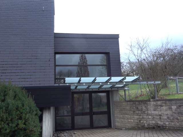 Die Aussegnungshalle von Frickenhausen befindet sich auf dem Friedhof, auf der linken Seite. Es ist eine große Halle, sehr modern gestaltet. Es ist viel Sichtbeton zu sehen. Rechts vom Eingang ist das Dach bis fast auf den Boden heruntergezogen. Eingedeckt ist es mit Eternitschindeln. In der Halle sind Holzbalken zu sehen. Adresse: Richard-Wagner-Straße 34, 72636 Frickenhausen Webseite: http:// frickenhausen. de/ Geodaten: H9Q4+4X Frickenhausen
