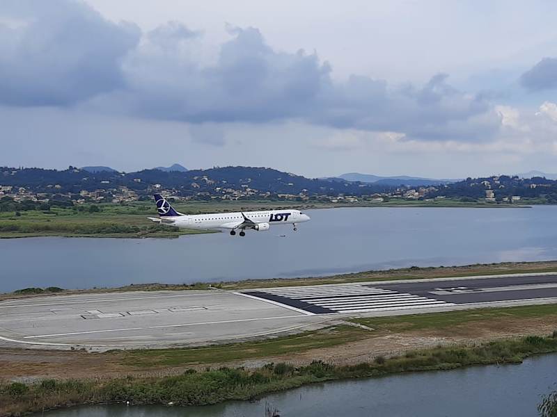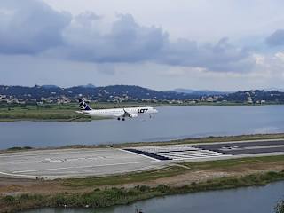 Ein unbedingter Stop war dieses Jahr auch der Aussichtspunkt Kanoni mit herrlichem Blick auf die kleine Mäuseinsel, die Kirche und natürlich die Landebahn des Flughafens. Wir haten sogar das Glück, ein Flugzeug im Landeanflug zu sehen - es war fantastisch. Natürlich kann man in dem Café den Ausblick auch bei einem Getränk genießen, aber wir hatten nicht so viel Zeit.