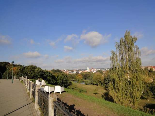 ... was will man mehr. Am Treffpunkt von Maironio und Subaciau-Straße findet sich ein netter kleiner Aussichtspunkt (mit Gastronomie), von dem man einen schönen Blick nicht nur auf die Altstadt von Vilnius genießen kann. Der Punkt wird von den Touristenbussen angefahren, ist aber auch gut vom südlichen Ende der Altstadt aus zu erreichen (von der an der Bastei vorbei) oder von Uzupis aus. Mit diesem Aussichtspunkt, dem Blick vom Fernsehturm aus, sowie der Aussicht vom Burgberg bzw. dem Berg der drei Kreuze kann man sich VIlnius sozusagen von allen Seiten einmal richtig betrachten.