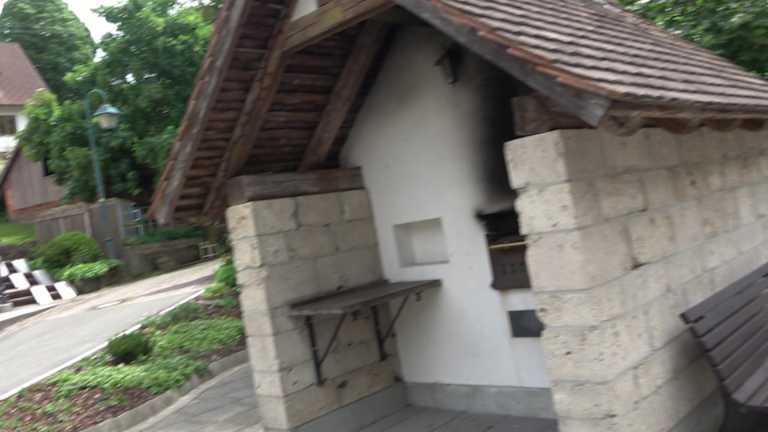 Direkt bei der Kirche, steht ein kleines Backhaus. Nach vorne ist es offen. Hier wird auch heute noch gebacken. Adresse: Brunnenstraße 21, 72296 Schopfloch Geodaten: CGCW+35C Schopfloch