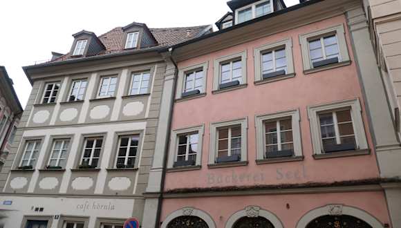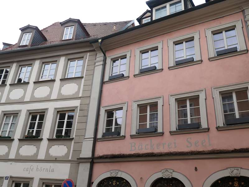 Hier bei der Bäckerei Seel, die sich als älteste Bäckerei Bambergs bezeichnet, wird angeblich seit 1427 das Bamberger Hörnchen (bambergerisch: Bambercher Hörnla) hergestellt. Natürlich gingen wir auch wieder zur Bäckerei Seel (Lugbank 8) und kauften uns jeweils eines dieser Croissant ähnlichen Butterhörnchen, welches wir jeweils „aus der Hand gegessen“ haben - das gehört einfach zu Bamberg dazu. Dieses Bambercher Hörnla aber bitte nicht mit dem anderen Bambercher Hörnla verwechseln, welches eine fränkische Kartoffelsorte ist.