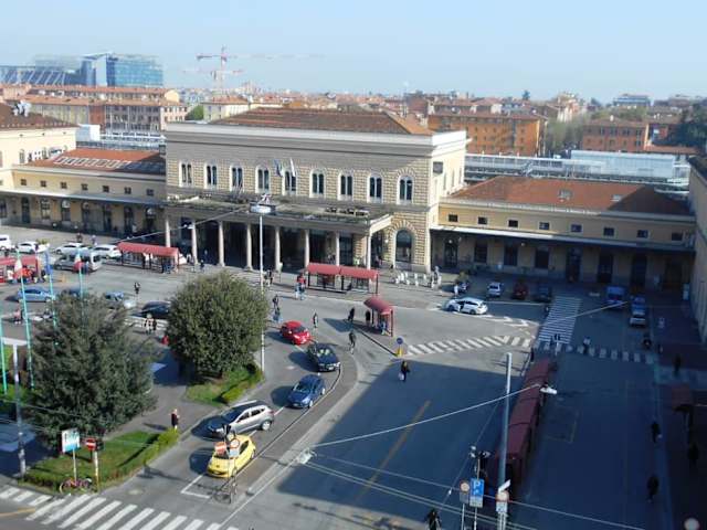 Vom Bahnhof Bologna Centrale kann man das Zentrum der Altstadt in etwa 15 Minuten zu Fuß erreichen; man kann also Bologna auch gut per Zug für einen Tagesauflug erreichen. Für die Fernzüge wurde ein separater unterirdischer Bahnhof gebaut, der unter dem alten Bahnhof liegt, von wo aus die Regionalzüge verkehren.