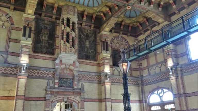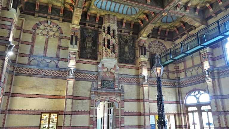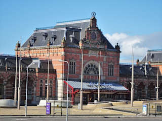 Der Hauptbahnhof von Groningen zählt zu den schönsten Bahnhöfen der Niederlande und wurde 1896 eröffnet. Das zentrale Hauptgebäude erweitern zwei kleinere Seitenflügel, die Backsteinfassade wird durch hellen Sandstein akzentuiert und präsentiert sich im Stil der Renaissance mit vielen neogotischen Einflüssen. Eyecatcher sind der vorspringende Treppengiebel und die großen Rosettenfenster, die auch prächtig zu einem herrschaftlichen Landsitz passen würden. In der Bahnhofshalle überraschen üppiger Stuck, Fliesen- und Glasmalereien, große Oberlichter und eine beeindruckende Gewölbedecke. Fahrkartenschalter und Gastronomie wurden komplett in die ehemaligen Warteräume der Seitenflügel verlagert, so dass in der Halle zudem eine ungewöhnliche Stille herrscht. Beim Bummel durch die Altstadt Groningens hat mich der Hauptbahnhof nachhaltig beeindruckt und lohnt ganz sicher einen kurzen Abstecher – vom Fischmarkt erreicht man ihn über Folkingestraat und die Museumsinsel in wenigen Gehminuten.