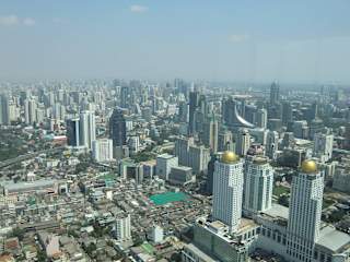 In der Roof Top Bar, 83. Etage, kann man den tollen Ausblick über Bangkok bei einem leckeren Cocktail genießen. Es lohnt sich den Eintrittspreis mit einem Getränk inklusive zu wählen. In der 84. Etage befindet sich der Revolving View Point. Im Außenbereich, geschützt durch Gitter, dreht, sich die Aussichtsplattform und man hat einen 360 Grad Rundumblick. Der Tower öffnet um 17 Uhr. Zu der Zeit erlebt man die Stadt ohne Beleuchtung, mit Glück sieht man einen tollen Sonnenuntergang und später die beleuchtete Stadt. Es ist beeindruckend.