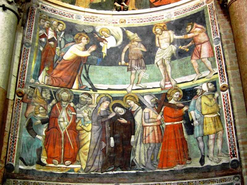 Das Baptisterium von Parma gilt als eines der bedeutendsten mittelalterlichen Baudenkmäler Italiens, nicht nur wegen des einzigartigen16-teiligen Freskenzyklus der Kuppel, sondern auch wegen seiner völlig intakten und einheitlichen romanischen Architektur. Diese immense Taufkirche, gebaut in den Jahren 1196-1216 von Benedetto Antelami, steht auf einem achteckigen Grundriss (wie immer) und ist ganz aus rosa Veroneser Marmor errichtet. Besonders sehenswert sind die drei Portale mit prachtvollen Skulpturen, die verschiedene biblische Szenen darstellen (ebenfalls von Antelami). Das Highlight eines jeden Parma-Besuchs ist das Innere des Baptisteriums, das von der Kuppel aus durch rosafarbigen Marmorrippen in 16 Felder aufgeteilt wird ; alle sind mit wunderbaren Fresken ausgestaltet, die noch deutlich vom byzantinischen Stil beeinflusst sind. Ein absolutes Meisterwerk! – Öffnungszeiten : täglich, 9.00-12.30 Uhr und 15.00-18.45 Uhr – Eintrittspreis: 3 bis 5 Euro (je nach Alter und Zeitpunkt).