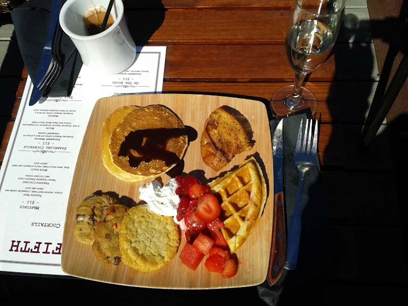 An unserem letzten Urlaubstag waren wir in dieser Rooftop-Bar sehr lecker brunchen. Es gab ein Glas Champagner und Kaffee so viel man mag, jeden Samstag und Sonntag, für 29$ pro Person. Man sollte pünktlich gegen 10 Uhr da sein, wenn die Bar aufmacht. Über Rührei mit Speck, Tomate-Mozzarella, diversen Früchten und Gemüsesorten für die Zusammenstellung eines Salats, Pancakes, Waffeln, Bagels etc., konnte man sich Omeletts, Burger und Hotdogs (die letzteren beiden nur in den Sommermonaten) selber zusammenstellen. Es hat alles super lecker geschmeckt und war - insbesondere im Zusammenspiel mit dem herrlichen Ausblick (mitunter aufs Empire State Building) - ein krönender Abschluss unserer New York-Reise! :-)