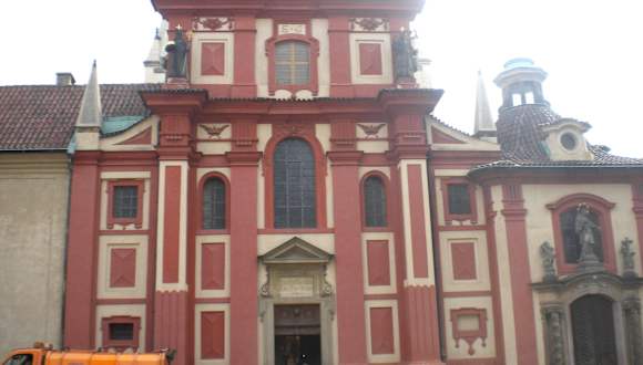 Das ehemalige Kloster St. Georg mit der zugehörigen Basilika befindet sich in der Prager Burg. Das Gotteshaus stammt aus dem Jahr 921 und ist somit die drittälteste Kirche in Böhmen. Das 50 Jahre später gegründete Kloster der Benediktinerinnen, war das erste Kloster im Land. Das Kloster bestand noch bis zum Jahr 1782. Die zwei weiße Türme sind gut sichtbar und erreichen eine Höhe von 41 Metern. Einer der Türme ist schief und neigt sich um 40 Zentimeter, was man nur beim genauen hinschauen sieht. Die Besichtigung der romanischen Inneneinrichtung der Basilika ist Bestandteil der Besichtigung der Prager Burg.