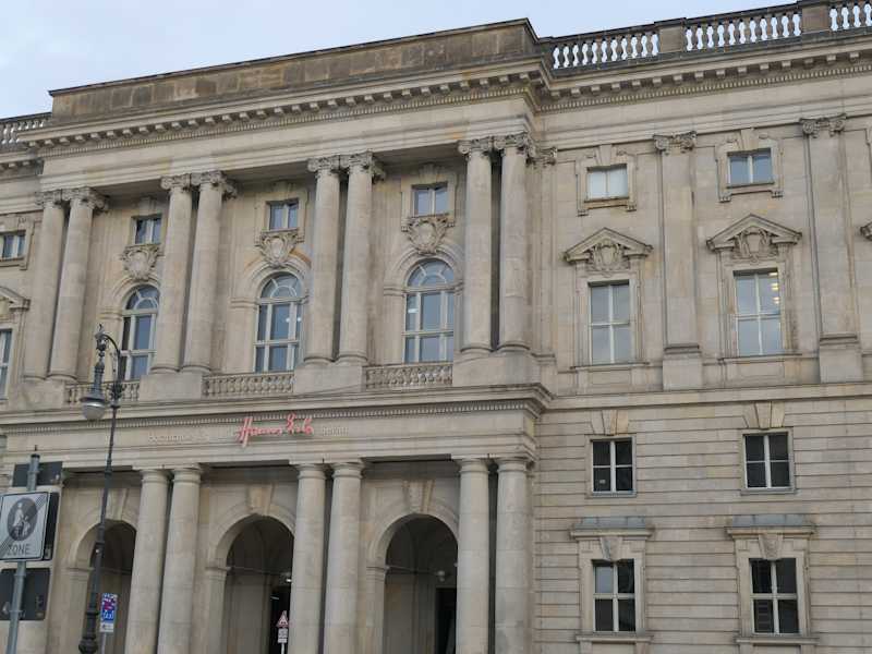 Der Neue Marstall, der sich am Schlossplatz 7 befindet (gegenüber vom Stadtschloss, unmittelbar an der Spree, gegenüber vom Nikolaiviertel), ist ein prächtiges, repräsentatives, sehenswertes Bauwerk in Berlin Mitte. Sowohl vom Schlossplatz, als auch von der Rathausbrücke und vom Spreeufer im Nikolaiviertel aus hat man einen tollen Blick auf den Neuen Marstall. Außer der beeindruckenden Fassade mit dem Eingangsportal sind auch das Karl-Marx-Relief und das Karl-Liebknecht-Relief aus dem Jahr 1988 beachtenswert – diese beiden Reliefs befinden sich an der dem Schlossplatz zugewandten Gebäudefassade. Der Neue Marstall wurde zwischen 1896 und 1901 als Königlicher Marstall errichtet. Bis zum Jahr 1918 waren im Königlichen Marstall bis zu 270 Pferden und 300 Wagen des preußischen Königshofs untergebracht. Ab 1920 wurde dieses prächtige Gebäude als Hauptsitz der Berliner Stadtbibliothek genutzt. Im Zweiten Weltkrieg wurde der Neue Marstall von Bomben getroffen und brannte aus. Nach dem Zweiten Weltkrieg wurde der Neue Marstall zwischen 1950 und 1965 durch die DDR in mehreren Bauabschnitten in vereinfachter und veränderter Form wieder aufgebaut, diverse bauliche Verzierungen wurden dabei weggelassen. Trotz dieser vereinfachten Form ist der Neue Marstall ein imposantes Bauwerk. Bis zur Wiedervereinbarung 1990 beherbergte der Neue Marstall neben der Berliner Stadtbibliothek auch Teile der Akademie der Künste der DDR. Nach der Wiedervereinigung Deutschlands und Berlin erfolgte eine umfangreiche Sanierung und Renovierung. Diese Umbauarbeiten wurden 2005 abgeschlossen. Seit Beendigung dieser Arbeiten im Jahr 2005 befindet sich im Neuen Marstall zusätzlich zur Berliner Stadtbibliothek noch eine Nebenstelle der Hochschule für Musik Hanns Eisler Berlin (die ihren Hauptsitz in der Charlottenstraße am Gendarmenmarkt, gegenüber vom Konzerthaus, hat).