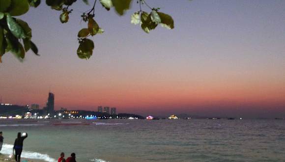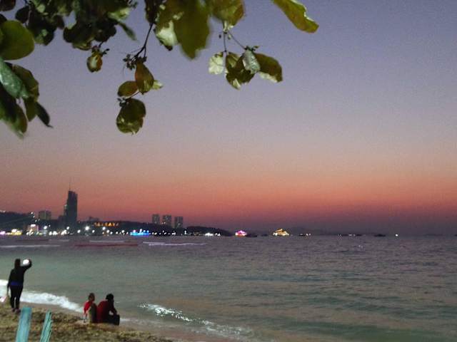 An der 3km langen Beach Rd die vom Dolphine Monument, genannt "Kreisel" im Norden bis hin zur Walking Street (extra Tipp) im Süden geht gibt es zig Beer Bars, Restaurants, Banken und Wechselstuben, Cafes, Shopping Malls, Massageläden aller Art, Barbiere, Maneküre/Pediküre und natürlich den über Pattaya hinaus bekannten Beach (extra Tipp). Parkende Autos und Motorräder in Fahrtrichtung, auch manchmal in zweiter Reihe blockieren den Zugang zu diesen. Dazu kommen noch die zahlreichen Busse die den Verkehr des öfteren zum Erliegen bringen, an Wochenenden besonders schlimm. Hier ist immer was los, egal zu welcher Tageszeit. Richtig voll und eng wird es wenn die ganzen Speedboote mit Asiatischen und Indischen Touristen von den vorgelagerten Inseln oder vom Parasailing an die Beach kommen. Man kann dort Stundenlang bummeln, Essen und Trinken, ob Tagsüber oder Nachts und alles ist sehr unterhaltsam. Aber immer ist Vorsicht geboten, egal wo und wann, aber das ist ja nicht nur in Thailand so. Richtig gefährlich wird es wenn jemand wie ein Goldesel behängt rumläuft, immer alles was glitzert im Hotelsafe lassen oder gleich am besten Daheim. An der Beach Rd kann man viele Freelancer (Prostituierte) aber auch Ladyboys (Transvestiten oder Katoy wie sie hier in Thailand genannt werden, oder scherzhaft "Dreibein") antreffen. Diese Katoys sind weit über Pattaya hinaus bekannt und gehören in Thailand zum "dritten Geschlecht". So wurde 2016 ein Katoy zur schönsten "Frau" Thailands gekürt. Ladys hingegen die gerne Mann sein möchten werden als "Tomboy" bezeichnet. Auch kann es passieren das man von irgendwelchen Typen angesprochen wird ob man nicht etwas zum Rauchen oder zum Schniefen braucht. Vorsicht, in Thailand sind die Strafen hierfür sehr, sehr hart, und ein Gefängnis in Thailand ist alles andere als schön. Ein Erlebnis ist der Sonnenuntergang an der Beach Rd immer, besonders wenn die Sonne den ganzen Tag vom Himmel knallt. Schön wenn die Sonne zwischen den Bergen auf Koh Larn (extra Tipp) versinkt. Ist auf alle Fälle einen Besuch wert.