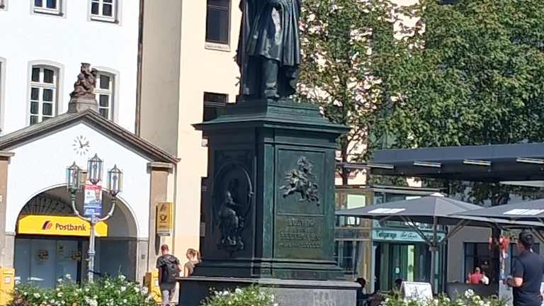 Das Denkmal für den berühmtesten Sohn der Stadt Bonn befindet sich auf dem Münsterplatz vor der Hauptpost – Ludwig van Beethoven steht mit einem Notenblatt und Stift auf seinem Sockel und blickt ernst über den Platz, den er als Kind sicherlich oftmals überquert hat. Errichtet wurde das Beethoven-Denkmal anlässlich des 75. Geburtstages des Komponisten im Jahre 1875, den dieser allerdings nicht mehr erlebte, denn Beethoven starb bereits 1827 im Alter von 56 Jahren in Wien. Geschaffen wurde das bronzene Denkmal vom Dresdner Bildhauer Ernst Julius Hähnel, während der Erzgießer Jacob Daniel Burgschmiet es entsprechend umsetzte. An der Enthüllung des Beethoven-Denkmals nahmen damals nicht nur der Preußische König Friedrich Wilhelm IV. und die regierende Königin Victoria von Großbritannien und Irland teil, sondern auch Alexander von Humboldt und der Komponist Franz Liszt, der die Feierlichkeiten nicht nur koordinierte, sondern sich auch mit einem ansehnlichen Betrag an den Kosten des Denkmals beteiligte. Beim Rundgang durch die Innenstadt lohnt sich der Abstecher zum Beethoven-Denkmal, das sicherlich zu beliebtesten Fotomotiven der Stadt zählt.