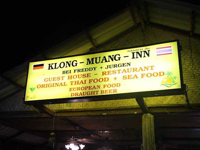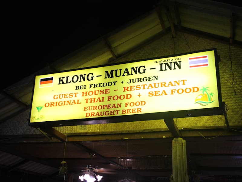 Unser Urlaubsort war der Klong Muang Beach bei Krabi. Zimmer hatten wir im Sheraton ,doch zum Essen sind wir am Abend öfters im Restaurant "Bei Freddy+Jürgen" gewesen. Es sind zwar vom Sheraton aus ca 800m,doch das war es wert. Preiswerte Thai- und Fischgerichte, aber auch Europäische Speisenwerden angeboten. Lagebeschreibung: Vom Sheraton Hotel ca. 800mtr richtung Andaman Holiday Resort E-Mail Adresse ist klong-muang-inn@directbox.com Hinweis/Insider-Tipp: Zum Restaurant gehört auch das Gästehaus Klong Muang Inn