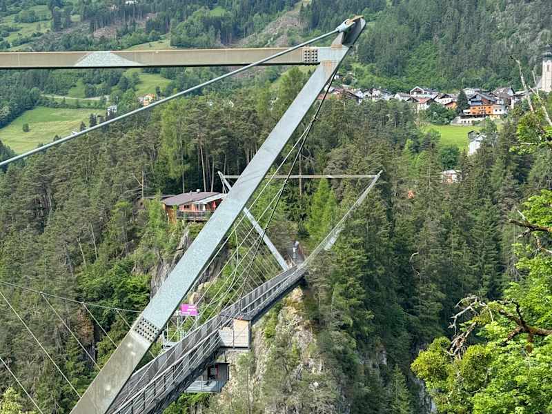 Unglaubliche Höhe und einen großartigen Ausblick bietet die Fußgängerbrücke im schönen Arzl im Pitztal. Für mich war es ein tolles Erlebnis. Für Mutige sind auch Bungee-Sprünge möglich.
