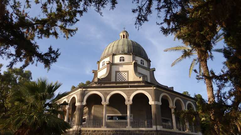 Von Tiberias aus erreicht man nach ca. 15 km über die Straßen 90 und 8177 den Berg der Seligpreisungen. Hier soll Jesus seine Bergpredigt gehalten haben, die eben mit den Seligpreisungen beginnt. Damit ist dies einer der wichtigen Orte für Christen. In einem schönen Garten befindet sich die 1937 errichtete Kirche der Seligpreisungen. Vom Garten aus hat man einen guten Blick auf und über den See Genezareth. Die achteckige Kirche ist recht interessant. In den Wänden der Kuppel sind die Seligpreisung geschrieben, auf dem Boden findet man schöne Mosaike. Nach Lukas soll Jesus hier auch seine 12 Jünger ausgewählt bzw. ernannt haben. Wie bei vielen Orten und Kirchen in Israel kann man nicht sagen, ob es sich hierbei wirklich um den biblischen Ort handelt.