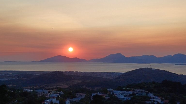 An der nach Zia führenden Serpentinenstraße gibt es am Ortseingang einen ganz besonderen Aussichtspunkt, von dem man zur Küste blicken und den Sonnenuntergang über dem Meer fotografieren kann. Hier werden schon am Nachmittag die Plätze mit dem besten Blick belegt, der kostenlose Parkplatz ist bis Sonnenuntergang völlig überbelegt. Wir waren nicht bis Sonnenuntergang hier, aber auch tagsüber gab es einen starken Andrang von Besuchern, denn sowohl der Naturpark am Ende des Ortes als auch der Ort mit seinen vielen kleinen Gewürz- und Souvenirläden ist sehenswert.