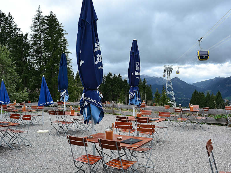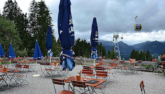 Da der Berggasthof Seealpe nur wenige Meter von der Station Seealpe (Mittelstation der Nebelhornbahn) entfernt ist, ist dieser Berggasthof auch sicherlich für viele erreichbar, die Probleme mit dem Laufen haben. Wir waren hier nach unserer Wanderung am Nebelhorn zu einer Erfrischungspause und saßen bei sonnigem, trockenem Wetter auf der Terrasse vom Berggasthof Seealpe. Von hier hatten wir zu unseren Getränken einen schönen Ausblick.