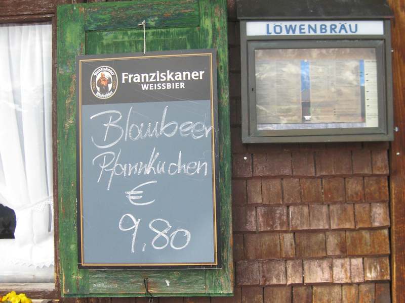 Da wir mit dem Bayernticket von München nach Garmisch-Partenkirchen fuhren, war der Bahnhof in Garmisch-Partenkirchen unser Ausgangspunkt für die Wanderung zur St. Martinshütte. Wir benötigten für die Wanderung vom Bahnhof bis zur Gastwirtschaft St. Martinshütte etwa 1 ½ Stunden. Der Forstweg der in einigen Serpentinen zur Bergwirtschaft ( 1040 Meter Höhe ) führt, ist ein beliebter Wanderweg über dem Garmischer Tal. Wir hatten einen sonnigen Frühlingstag, da war die sonnige Terrasse vor der Berggaststätte, der ideale Platz das Bergpanorama zu genießen. Herrliche Aussicht zu den großen Wettersteingipfeln wie z.B. Zugspitze 2966 m, Waxenstein 2279 m und Alpspitze 2628 m. Die Speisenauswahl war für einen Berggasthof durchaus bemerkenswert. Ein Stammgast empfahl mir den Blaubeer Pfannkuchen. Der Blaubeer Pfannkuchen kostete 9,80 Euro. Selten habe ich so einen leckeren Pfannkuchen gegessen. Auch das übrige Angebot auf der Speisekarte war empfehlenswert. So gab es u.a.: Tiroler Gröstl mit Spiegelei 9,80 Euro, Kalbs-Tafelspitz mit Kraut 13,80 Euro, Schnitzel Wiener Art mit Kartoffelsalat 10,50 Euro und Bayrischer Wurstsalat 6,90 Euro. Die Getränke kosteten lt. Karte: Spezi 0,5 l – 3,20 Euro, Salvator-Starkbier 0,5 l – 3,90 Euro, Paulaner Hefeweizen 0,5 l – 3,40 Euro und Radler 0,5 l – 3,40 Euro. Die Getränke und das Essen wurden von einer freundlichen Bedienung relativ schnell zum Tisch gebracht. Die Qualität unserer Speisen war sehr gut. Bei der herrlichen Fernsicht und dem guten Essen hat sich für uns der Aufstieg zur St.Martinshütte gelohnt. Beim Abstieg besichtigten wir noch die in Nähe des Forstweges liegende Kriegergedächtniskapelle. Öffnungszeiten Frühjahr/Sommer lt.Internet: Mo bis So von 10:00 Uhr bis 18:00 Uhr warme Küche bis 16:30 Uhr Kein Ruhetag Noch erwähnen möchte ich, die Zeitschrift Globo, zählte die St.Martinshütte zu einem der schönsten Orte auf unserer Erde.
