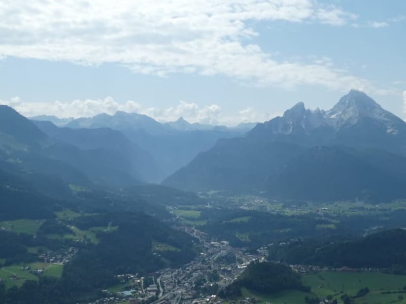 Nach unserer Wanderung von Maria Gern, was auf einer Höhe von ca. 700 Metern liegt, wurden wir bei der Ankunft an der Berggaststätte Kneifelspitze (auch als Paulshütte bekannt) auf ca. 1190 Meter Höhe mit einem fantastischem Ausblick belohnt. Von der Terrasse der Berggaststätte Kneifelspitze (Paulshütte) hatten wir einen wirklich tollen Ausblick. Es war ein schöner sonniger warmer und klarer Tag, und so konnten wir auf der Terrasse gut unseren Kaffee, Kuchen – und besonders den Blick auf Berchtesgaden und auf die Bergwelt Berchtesgadenes mit dem Watzmann genießen.