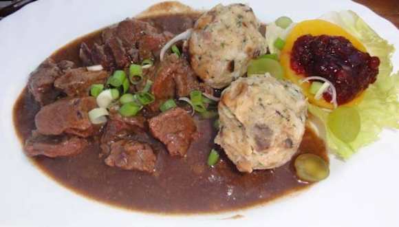 Der Berghof Schwarzenberg befindet sich direkt beim Alpenwildpark im Außenbereich von Obermaiselstein. Ab dem Ortseingang folgt man einfach der Park-Beschilderung. Die Einrichtung des Gasthofs ist mit unzähligen ausgestopften Tieren ganz auf den Alpenwildpark abgestimmt, was sicher nicht jedermanns Sache ist. Bei schönem Wetter kann man zum Glück draußen auf der Sonnenterrasse mit Bergblick Platz nehmen. Wir haben vor dem Besuch des Alpenwildparks im Berghof Schwarzenberg eingekehrt. Auf der Tageskarte stand ein Hirschgulasch mit Brezenknödel und Beilagensalat, für das wir uns dann entschieden haben. Ansonsten gibt es eine kleine Auswahl an warmen Speisen, verschiedene Brotzeiten und Eisbecher. Unser Essen war durchschnittlich, nicht schlecht, aber auch kein kulinarisches Highlight. Der Preis hierfür war weder auf der Tageskarte ersichtlich, noch haben wir eine Rechnung erhalten – ich tippe einfach mal auf 14,90 Euro. Zwischen dem Gasthof und dem Parkplatz befindet sich ein Spielplatz, der auf den ersten Blick nicht schlecht aussieht. Bei näherer Betrachtung mußten wir feststellen, daß nicht alle Spielgeräte intakt sind, so fehlt z.B. bei einer Schaukel eine Schraube. Alles in allem waren wir vom Alpenwildpark samt Gastronomie nicht begeistert.