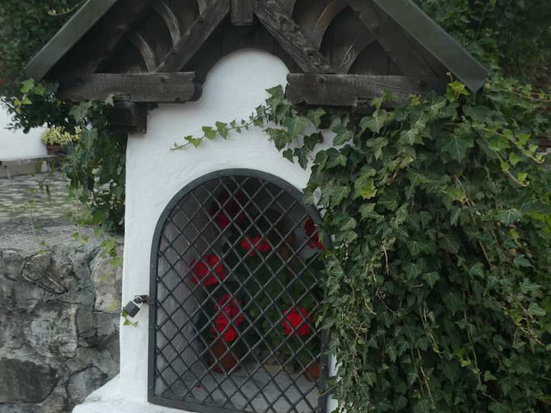 In Oberstdorf gibt es mehrere Bildstöcke. Einer dieser Bildstöcke befindet sich in der Oststraße in der Nähe vom Heimatmuseum. In diesem Bildstock ist die Figur von Maria mit dem Jesus-Kind auf ihrem Arm. Als wir im August 2023 hier waren, war der Bildstock mit einem reichlichen Blumenschmuck versehen, der jedoch die Sicht auf Maria und ihrem Sohn etwas behinderte.