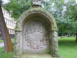 Im Osten vom Juliusspital-Park in Würzburg befindet sich ein Bildstock aus dem Jahr 1819. Dieser Bildstock zeigt Jesus als Kind, zusammen mit den Vierzehn Nothelfern (die 14 Nothelfer sind die Heiligen Achatius, Ägidius, Barbara, Blasius, Cyriacus, Christophorus, Dionysius, Erasmus, Eustachius, Georg, Katharina, Margareta, Pantaleon und Vitus). Auf dem Sockel des Bildstockes steht geschrieben: „O Ihr Heiligen Nothelfer Bittet für uns denn das Ge- beth der Gerechten …..........“ Wenn Sie im Juliusspital-Park unterwegs sind, so schauen Sie sich doch auch einmal diesen Bildstock mit dem Kind Jesus und den Vierzehn Nothelfern an, der sich in der Nähe vom Gartenpavillon befindet.
