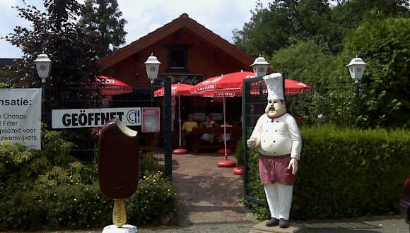 Einer der Gründe die niederrheinische Kleinstadt Rees zu besuchen ist ein bekannter Garten- und Landschaftsbauer, der dort ein riesiges Ausstellungsgelände hat. Nachdem wir dort mehrere Stunden durchgelaufen sind und ein bißchen müde waren, besuchten wir den dazugehörigen Bistro. Der ist uns jetzt einen Hinweis wert, weil man dort nett sitzen kann und wir aus der großen Auswahl jahreszeitlich bedingt einen erstklassigen Erdbeerpfannekuchen zu uns genommen haben. Jetzt gibt es schon zwei Gründe.....