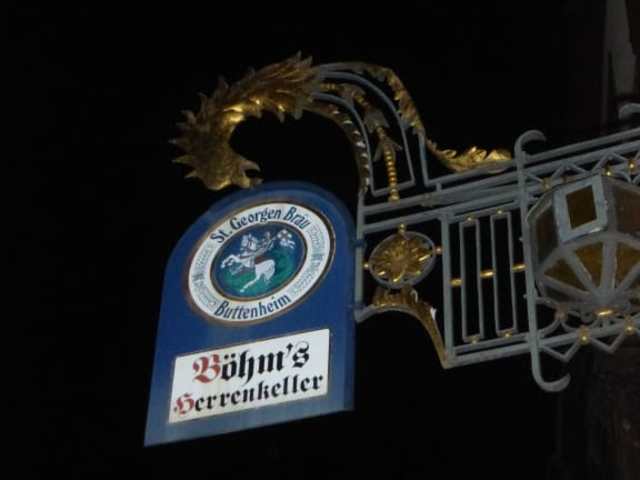 Böhms Herrenkeller liegt in der Theatergasse 19, nur wenige Meter von der Königstraße entfernt (wenn man der Königstraße von Königsturm / Handwerkerhof / Hauptbahnhof aus kommt, geht es nach ca. 250 Metern rechts ab in die Theatergasse, nach weiteren ca. 50 Metern erreicht man Böhms Herrenkeller. Man bekommt hier ordentliche fränkische / nürnberger Küche vorgesetzt wie z.B. Nürnberger Bratwurst, Schäufele, Krustenbraten usw., aber auch Steaks, Fisch, Suppen, Salate und mehr. Auch einige vegetarische Gerichte stehen auf der Speisekarte. Dazu gibt es u.a. den guten Frankenwein oder leckeres Bier. Das Lokal befindet sich in einem alten Gebäude mit gemütlichen Räumen. Wir hatten uns hier sehr wohl gefühlt und das Essen hat uns sehr gut geschmeckt.