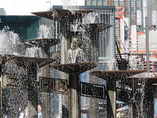 Der "Brunnen der Völkerfreundschaft" befindet sich mitten auf dem Alexanderplatz im Berliner Bezirk Mitte. Er wurde zwischen 1969 und 1970 bei der Neugestaltung des Platzes von dem Architekten Walter Womacka im Stil der sozialistischen Moderne geschaffen. Der Brunnen besteht aus einem äußeren und einem inneren Wasserbecken. Das kreisrunde äußere mit Hartgestein verkleidete Brunnenbecken hat einen Durchmesser von etwa 23 Metern. In dem höher liegenden inneren Becken stehen 17 in der Höhe gestaffelte, spiralförmig angeordnete Kupferblechpfeiler, die blattförmige Schalen tragen. Der Brunnen verfügt über bunte Verzierungen aus Kupfer, Keramik, Glas und Emaille. Zu DDR Zeiten wurde der Brunnen auch Nuttenbrosche genannt, da hier junge Frauen auf ihre Freier warteten. Die Brunnenanlage steht unter Denkmalschutz.