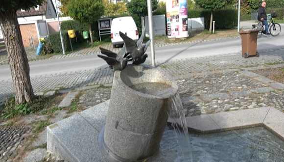 Bronzetauben am Brunnen
