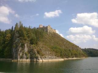 Schloss in Czorsztyn (Schorstin), die Ruinen eines gotischen Schlosses aus dem 14. Jh., auf einer Anhöhe am Dunajec (Dunajetz) in Grenzen vom Nationalpark Pieninen gelegt. Man kann hier teilweise erhaltene Ruinen des Unter- und Oberschlosses, Renaissancebastei von Baranowski und die Grünanlage besichtigen. Von den Terrassen des Oberschlosses aus erstreckt sich ein interessantes Panorama auf den Czorsztyn-See, Pieniny Spiskie und die Tatra. Aus der Fenster der Bastei kann man die Landschaft von Podhale, Gorzec und teilweise auch Pieniny in Czorsztyn bewundern. In den Räumen des Oberschlosses befindet sich eine Ausstellung zum Thema der Geschichte des Schlosses und Landrates von Czorsztyn als auch kleines Lapidarium. Besuchen der Ruinen der Czorsztyn kann man einzelnen, ohne einen Führer. Das Schloss ist für Besucher geöffnet von 01.05 bis 30.09; 9.00 bis 18.00 und von 01.10 bis 30.04, von 10.00 bis 15.00 Uhr. Besichtigung des Schlosses dauert ca.1-2 Std. Ich rate weiter mit Cruises "White Lady", oder Gondole von der Burg zur Schloss in Niedzica fahren.