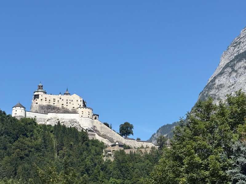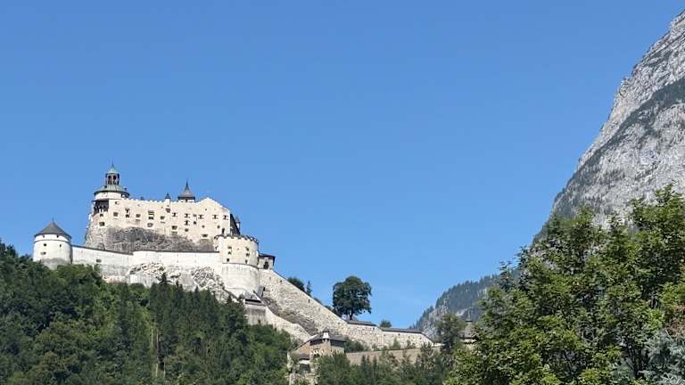 Hoch über Werfen befindet sich die Festung Hohenwerfen, deren Ursprung auf die zweite Hälfte des 11. Jahrhunderts zurückgeht. Diese Höhenburg im Salzburger Land ist in den Sommermonaten auch für Touristen_innen zugänglich (Tickets können auch Online gebucht werden).